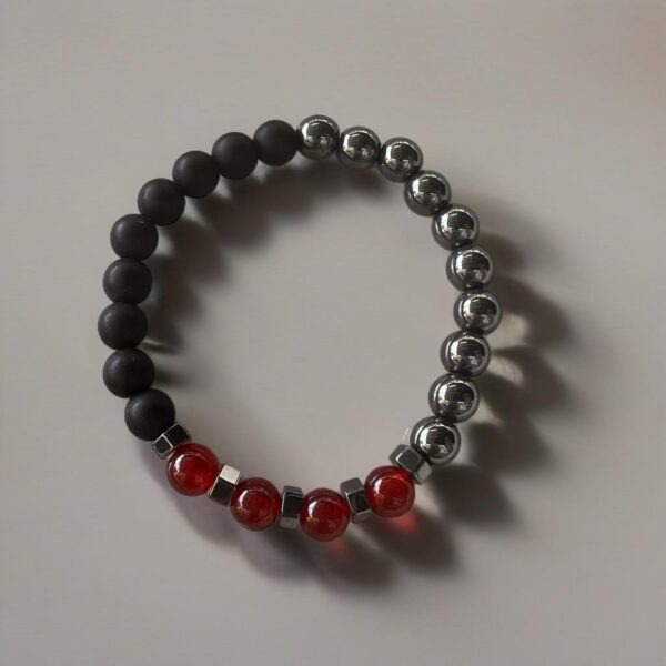 Δερμάτινο βραχιόλι με μαύρο και κόκκινο δέρμα και μαύρα μεταλλικά στοιχεία