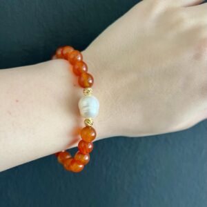 Χειροποίητο βραχιόλι με μεταλλικά στοιχεία και πορτοκαλί κηροκλωστές