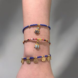 Βραχιόλι με μικρές χάντρες και μεταλλικό στοιχείο πασχαλίτσα