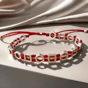 Χειροποίητο βραχιόλι με μεταλλικά στοιχεία και κόκκινες κηροκλωστές