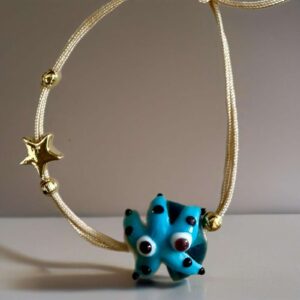 Βραχιόλι με γυάλινες χάντρες και κεραμικό μάτι ζωγραφισμένο στο χέρι Blue Eyes