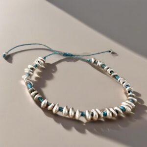 Χειροποίητο βραχιόλι με μεταλλικά στοιχεία και γαλάζιες κηροκλωστές