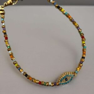 Βραχιόλι με μεταλλικές και ακρυλικές χάντρες και ματάκι