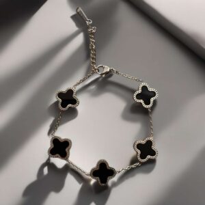 Βραχιόλι με μεταλλικές και ακρυλικές χάντρες και τετράφυλλο τριφύλλι