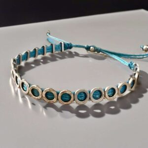 Γαλάζιο χειροποίητο βραχιόλι με μεταλλικά στοιχεία και κηροκλωστές
