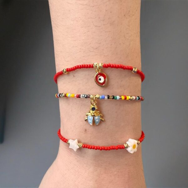 Βραχιόλι με χάντρες και μεταλλικά φλουριά