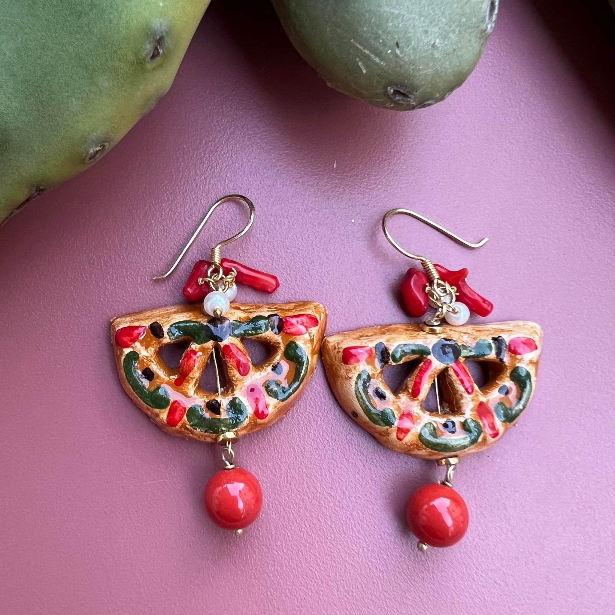 Σκουλαρίκια επιχρυσωμένα Σικελίας με κεραμικό Caltagirone V
