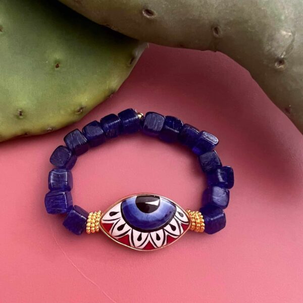 Βραχιόλι με γυάλινες χάντρες και κεραμικό μάτι ζωγραφισμένο στο χέρι Hard Blue