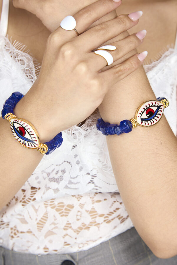 Βραχιόλι με γυάλινες χάντρες και κεραμικό μάτι ζωγραφισμένο στο χέρι Hard Blue