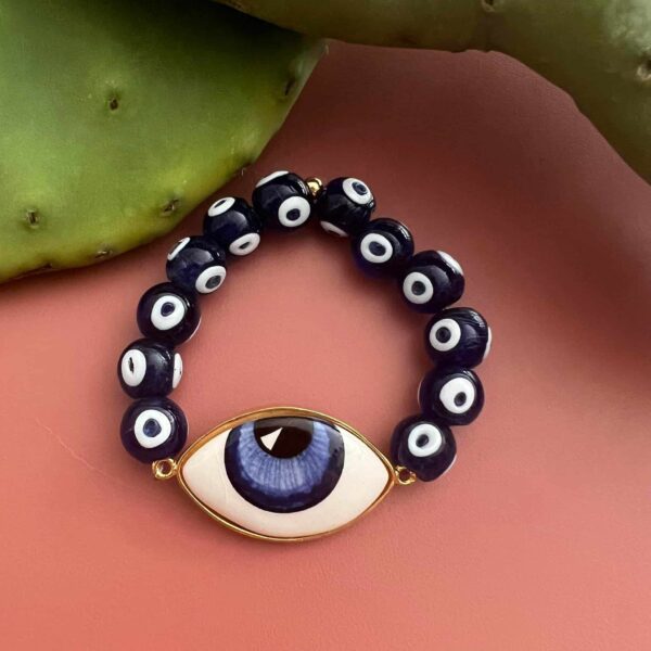 Βραχιόλι με γυάλινες χάντρες και κεραμικό μάτι ζωγραφισμένο στο χέρι Millions
