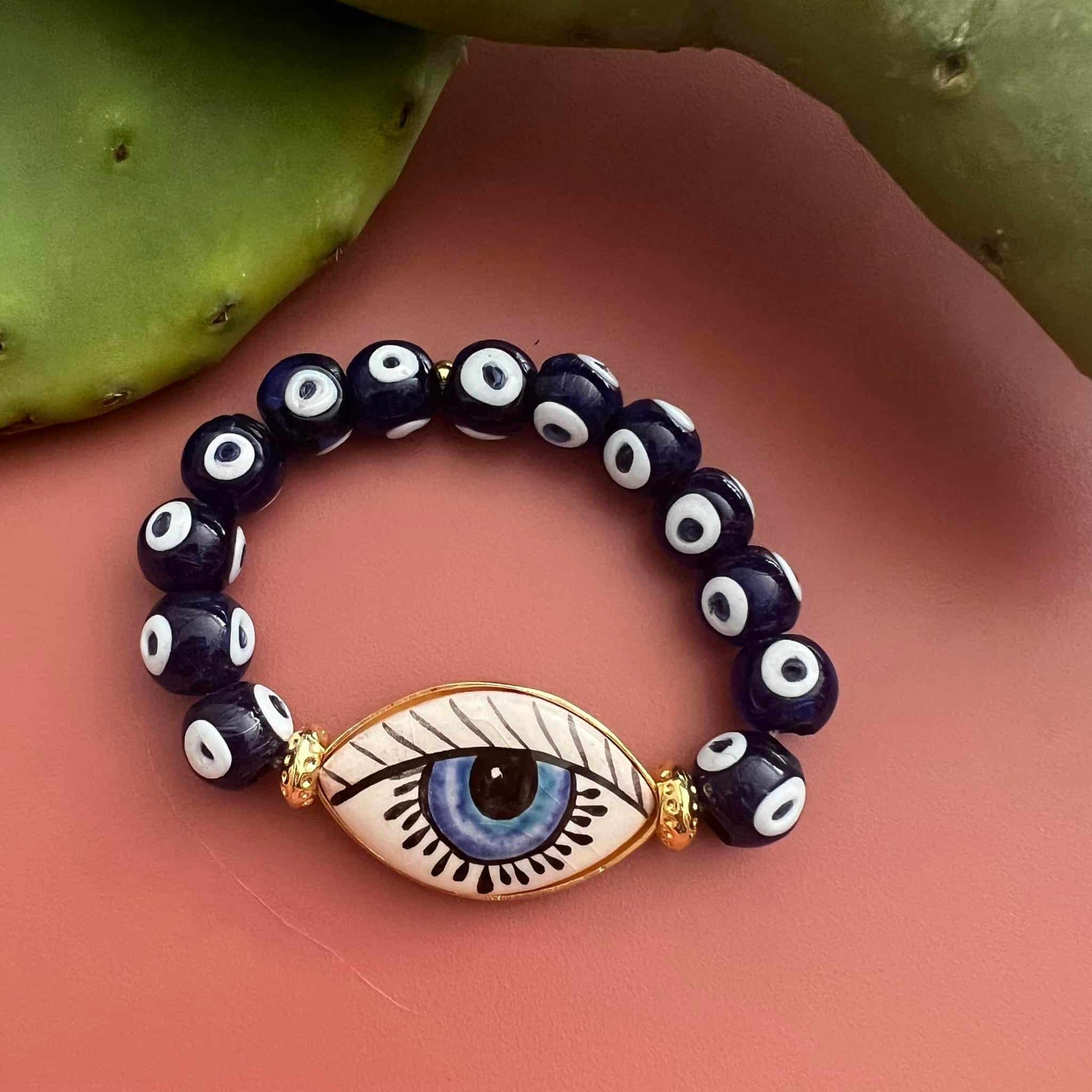 Βραχιόλι με γυάλινες χάντρες και κεραμικό μάτι ζωγραφισμένο στο χέρι Millions II