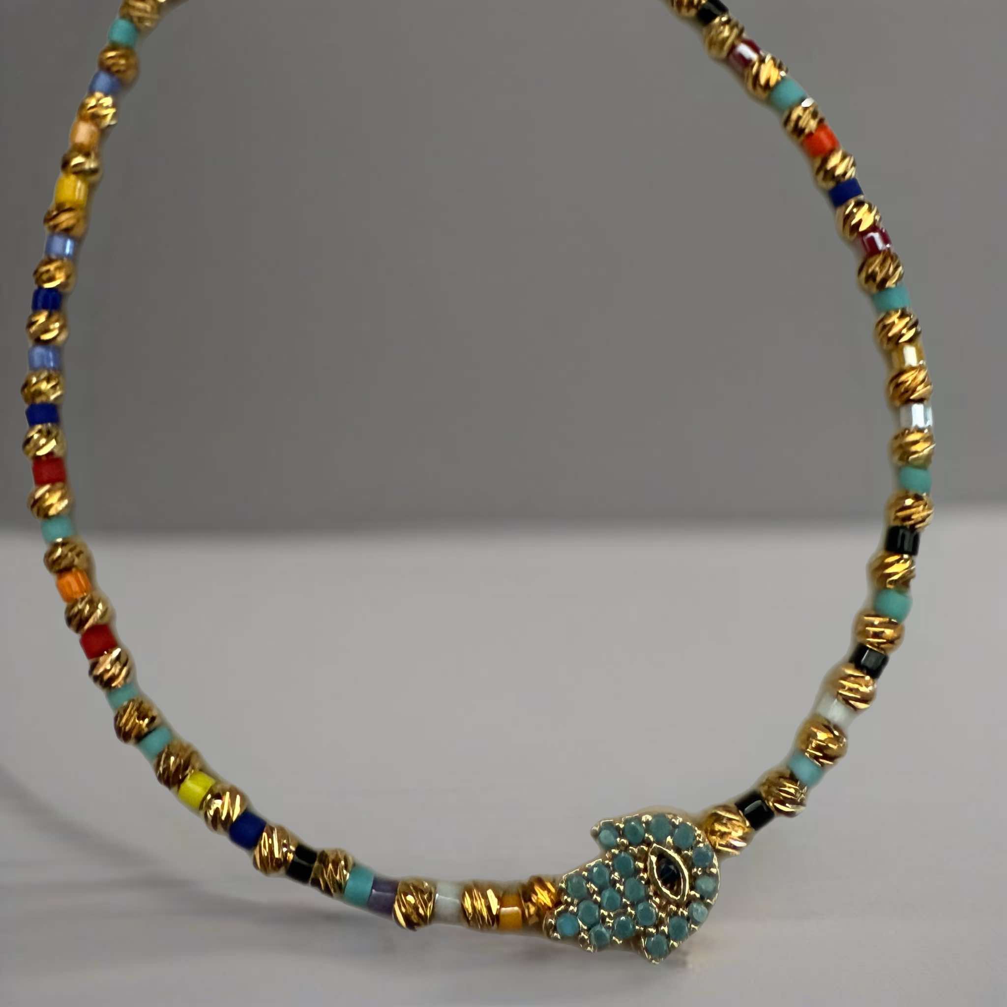 Βραχιόλι με μικρές χάντρες και μεταλλικό στοιχείο ιππόκαμπο