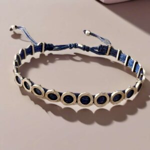 Σκούρο μπλε χειροποίητο βραχιόλι με μεταλλικά στοιχεία και κηροκλωστές