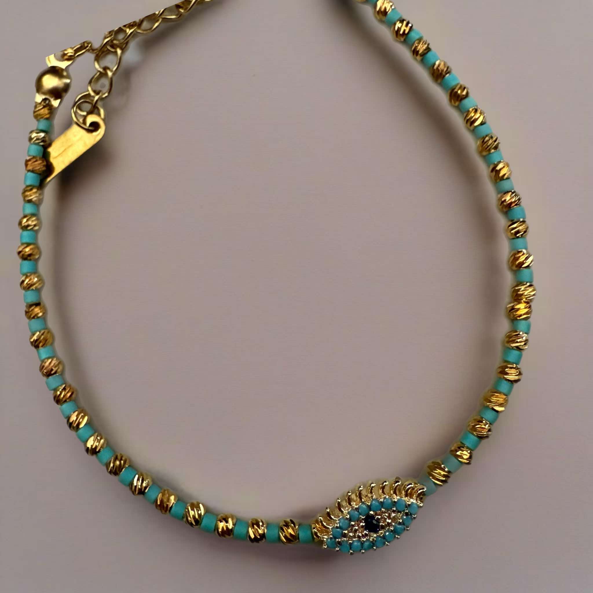 Βραχιόλι με μεταλλικές και ακρυλικές χάντρες και ματάκι