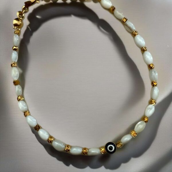 Βραχιόλι με μεταλλικές και ακρυλικές χάντρες και ματάκι