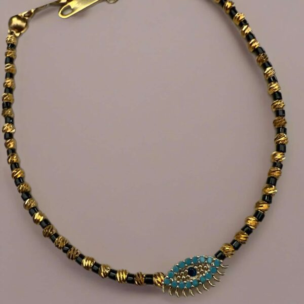 Βραχιόλι με μεταλλικές και ακρυλικές χάντρες και ματάκι