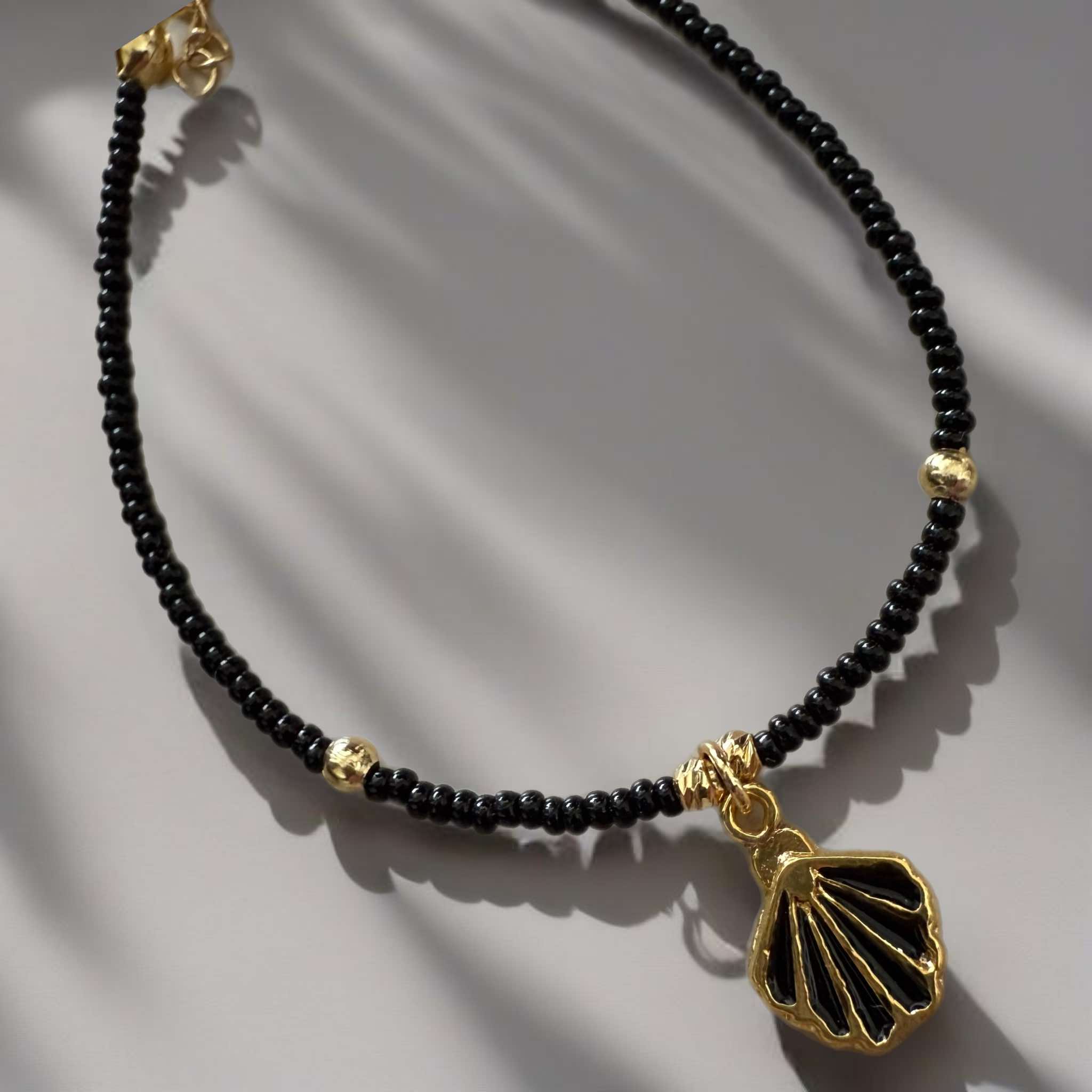 Βραχιόλι με μικρές χάντρες και μεταλλικό στοιχείο κοχύλι