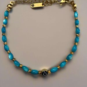 Βραχιόλι με μεταλλικές και ακρυλικές χάντρες και ματάκι