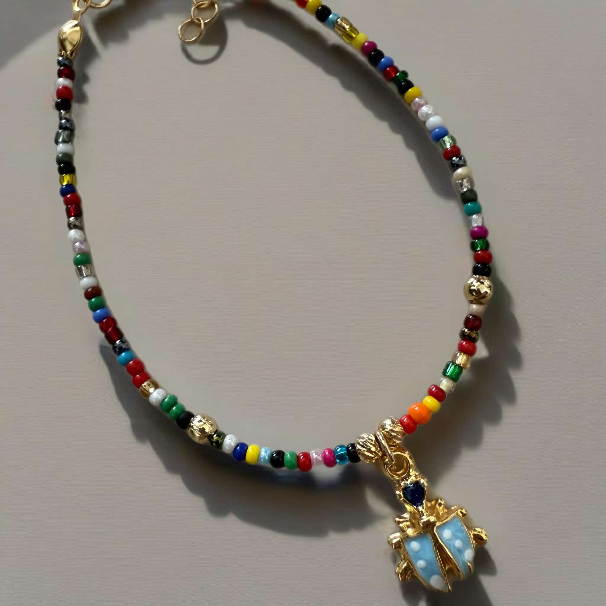 Βραχιόλι με μικρές χάντρες και μεταλλικό στοιχείο πασχαλίτσα