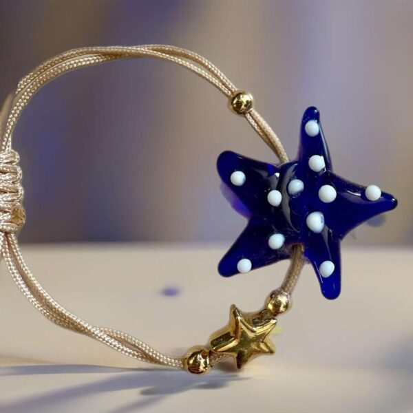 Χειροποίητο βραχιόλι με μακραμέ δέσιμο και στοιχείο κατασκευασμένο από μουράνο γυαλί.