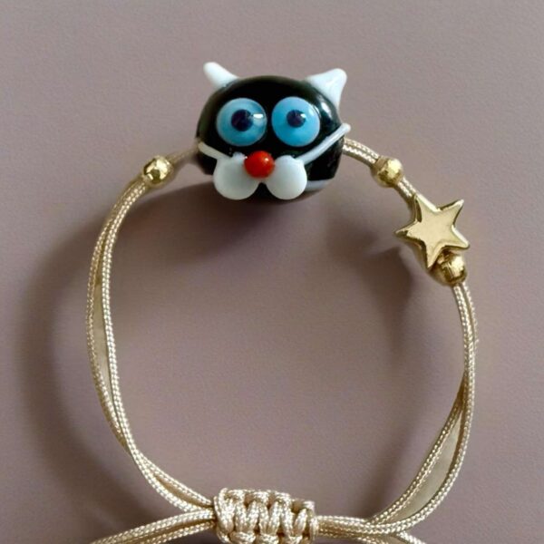Χειροποίητο βραχιόλι με μακραμέ δέσιμο και στοιχείο κατασκευασμένο από μουράνο γυαλί.