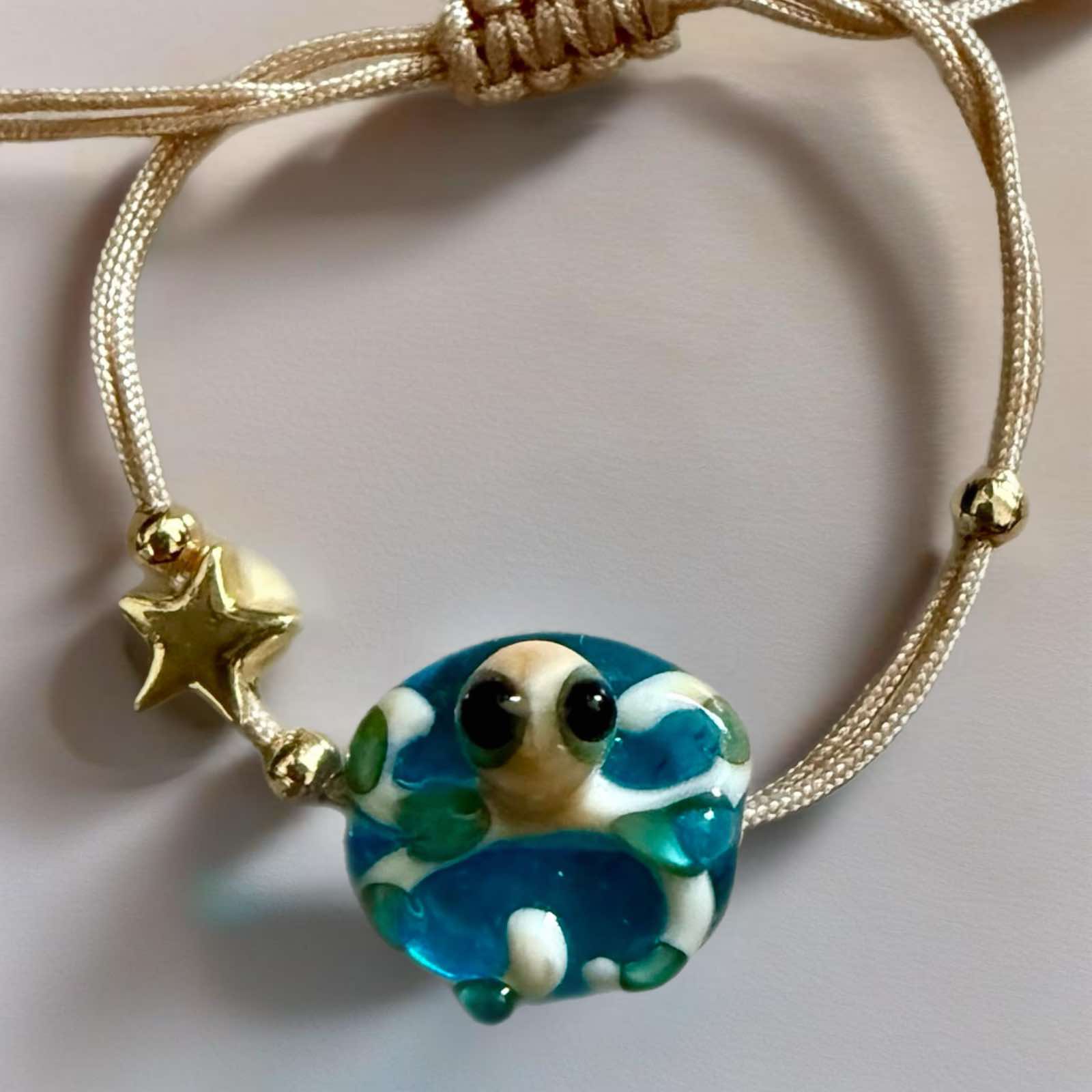 Χειροποίητο βραχιόλι με μακραμέ δέσιμο και στοιχείο κατασκευασμένο από μουράνο γυαλί.
