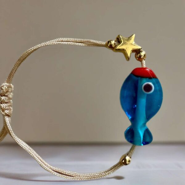 Χειροποίητο βραχιόλι με μακραμέ δέσιμο και στοιχείο κατασκευασμένο από μουράνο γυαλί.