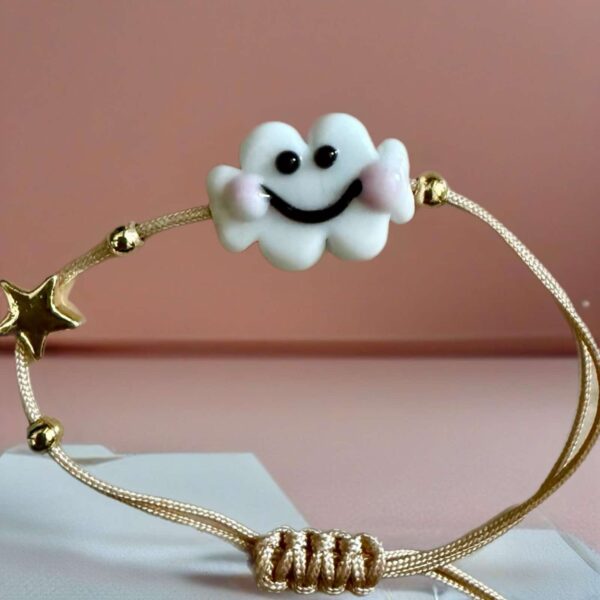 Χειροποίητο βραχιόλι με μακραμέ δέσιμο και στοιχείο κατασκευασμένο από μουράνο γυαλί.