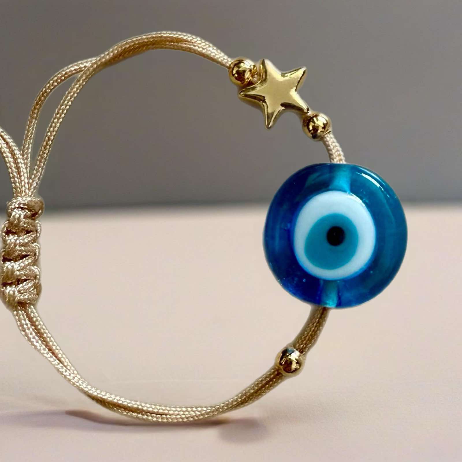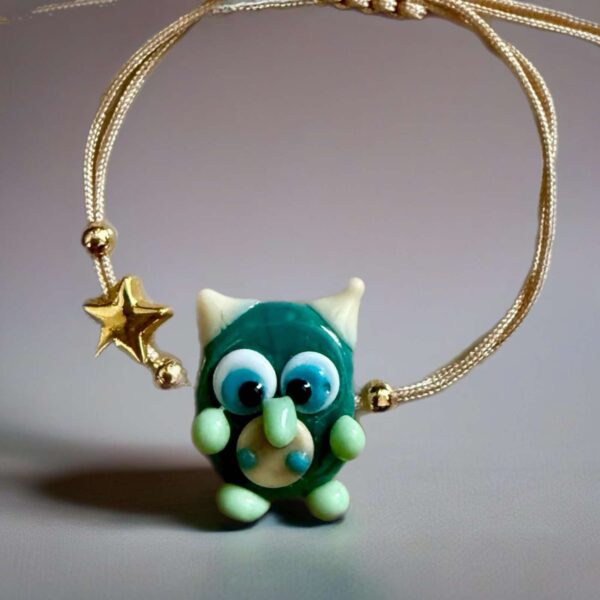 Χειροποίητο βραχιόλι με μακραμέ δέσιμο και στοιχείο κατασκευασμένο από μουράνο γυαλί.